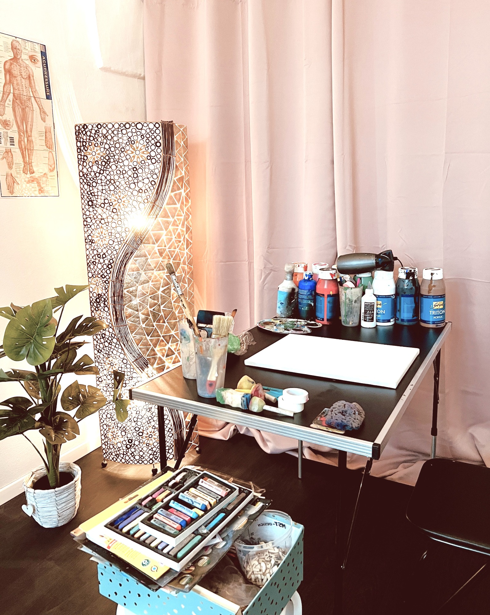 In der Kunsttherapie können verschiedene Materialien wie Papier, Farben, Stifte, Ton oder Collagen verwendet werden, je nachdem, was für den jeweiligen Ausdruck am hilfreichsten ist.