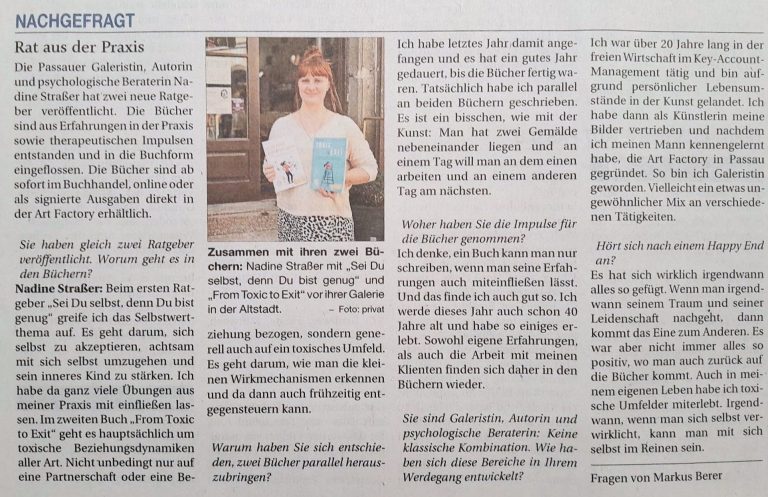 Ich bedanke mich ganz herzlich bei der Passauer Neuen Presse für die Veröffentlichung des Interviews zu meinen Ratgebern!